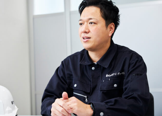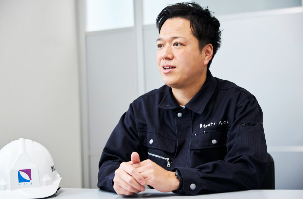 チームの拡大も、直近の目標のひとつです。「人数を増やすことで、ゆくゆくは海外展開もできたら嬉しい」なんて壮大な夢を、仲間とお酒を飲みながら語ることもあります。叶わない夢だと笑う人はKDSにはいません。社長も背中を押してくれます。みんなで「大きなプロジェクトに携わりたい」「新しい取引先を開拓したい」などと、熱く夢を語り合うこともある。そんな社員の人柄も、KDSの好きなところです。夢を持てる人にとっては働きやすい会社ではないでしょうか。今では社長を見習って、私も後輩の夢を後押ししています。現場でのちょっとした休憩時間でも、仕事終わりの飲みの席でも、一緒に夢を語りましょう。